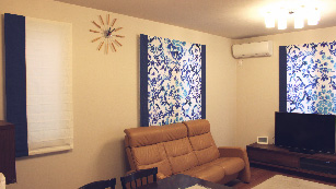 無地だけだと間延びしてしまう様な大きな窓は、こうしてアクセントを加えると引き締まります