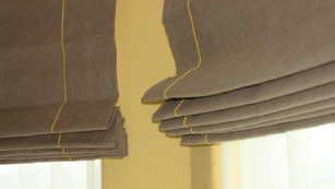 普通の無地のプレーンシェードも、こうしてパイピンでラインを入れると、モダンでオシャレに演出できます。