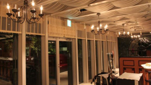 上質でしなやかなドレープをバサッと掛けて、麻のレースでシャープシェード。