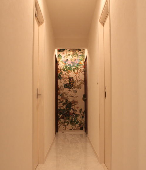 1F廊下の突き当たりにも、アクセントクロスを。