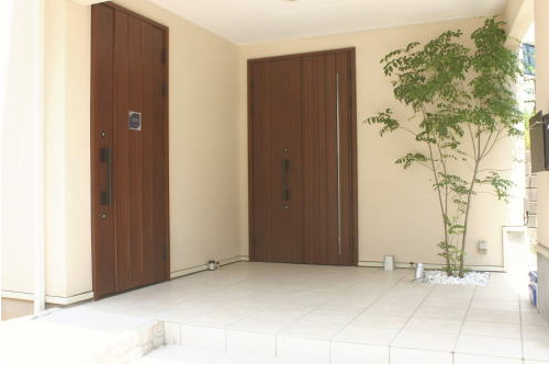 右側が自宅の玄関、左が事務所の入り口です。