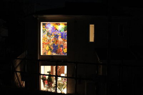 奥の窓の外にはシンボルツリーと、それを照らすライトを付けているけど、まだツリーが小さいので、存在感薄すぎ。数年したら立派になるそうだけど、どうなんだろう?