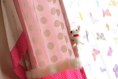 大きい方の窓(と言っても腰窓だけど)は、こんな感じで。「お姉さんっぽくしてね~」っていうマセた上の娘のリクエスト(当時年長)から、ピンク~パープルの同系色のみのトーン・オン・トーンで。