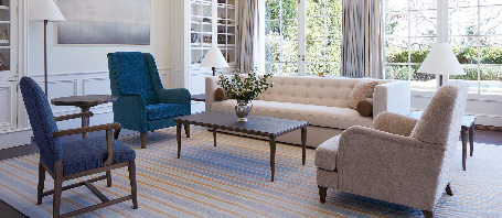 カバリングタイプのチェアは、生地の面積が大きいだけに、生地のセレクトで大きく印象を変えられます。