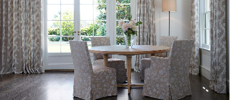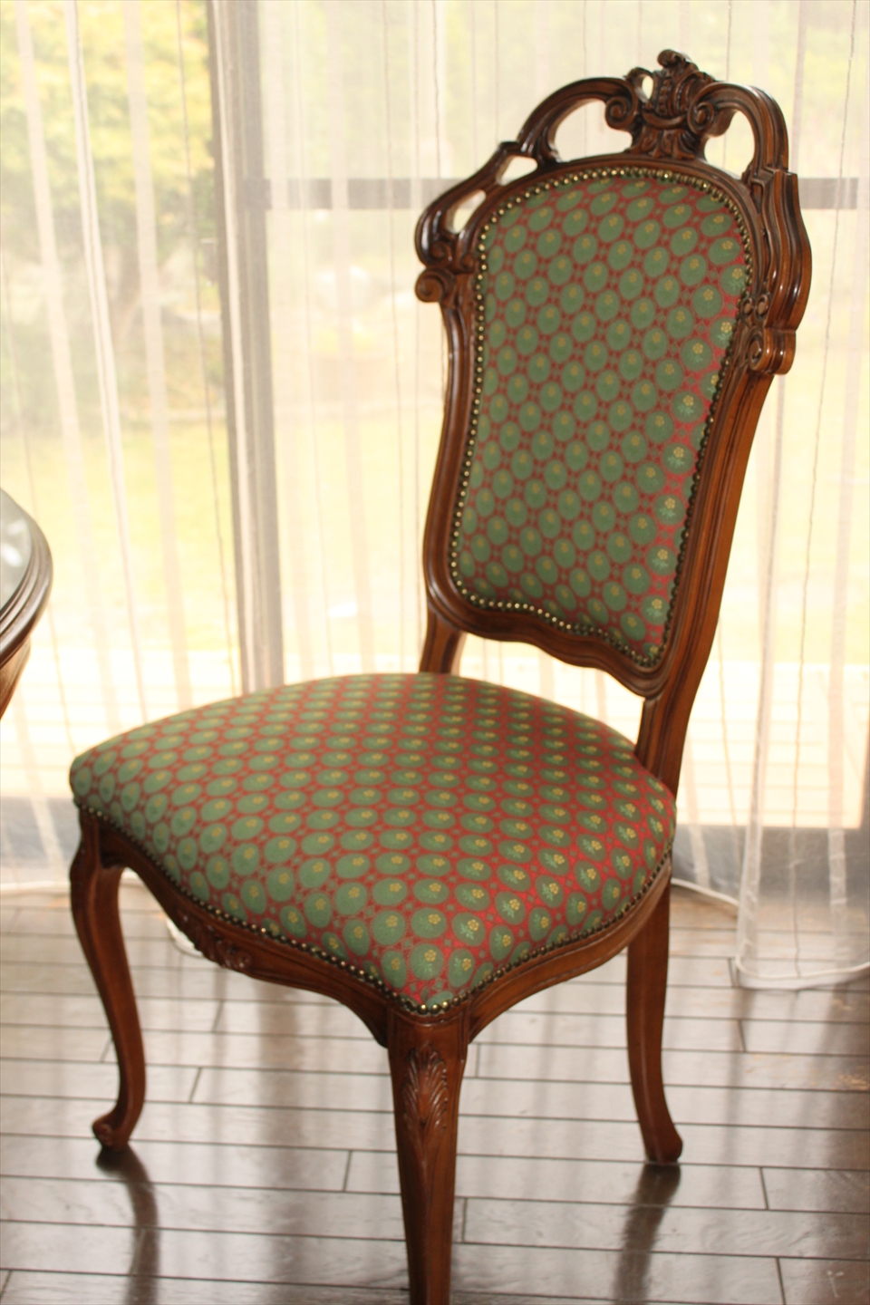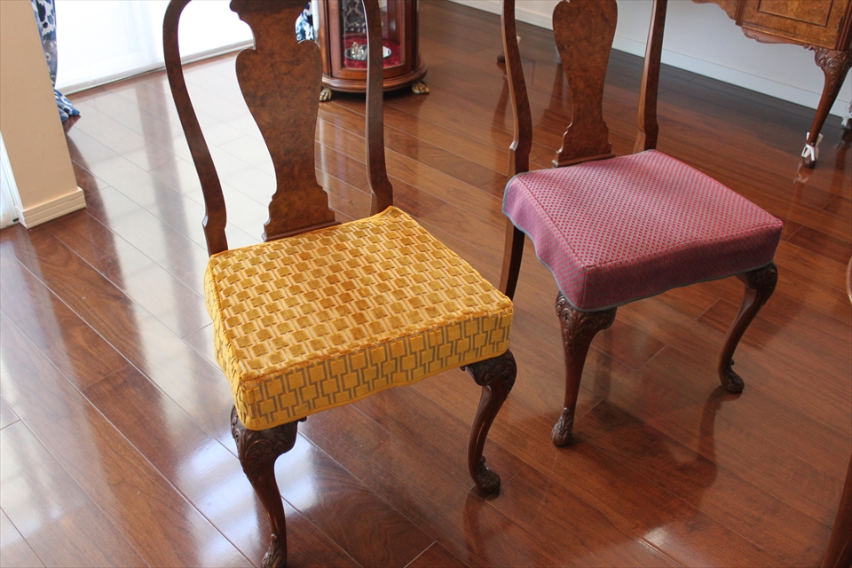 エレガントで上品、かつ丈夫なシュニール糸を使った生地でダイニングチェアを張り替えました。 …