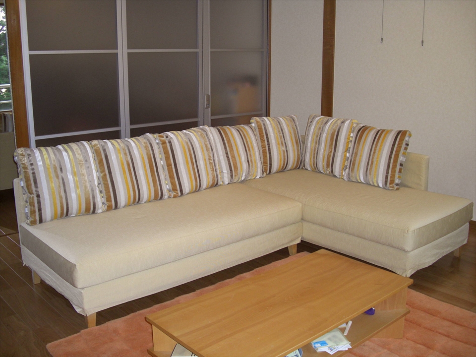 座った時に沈み込むくらい柔らかいタイプのソファは、ヘタると腰への負担も大きいもの。張り替えと同時に絶妙な硬さへリメイク…
