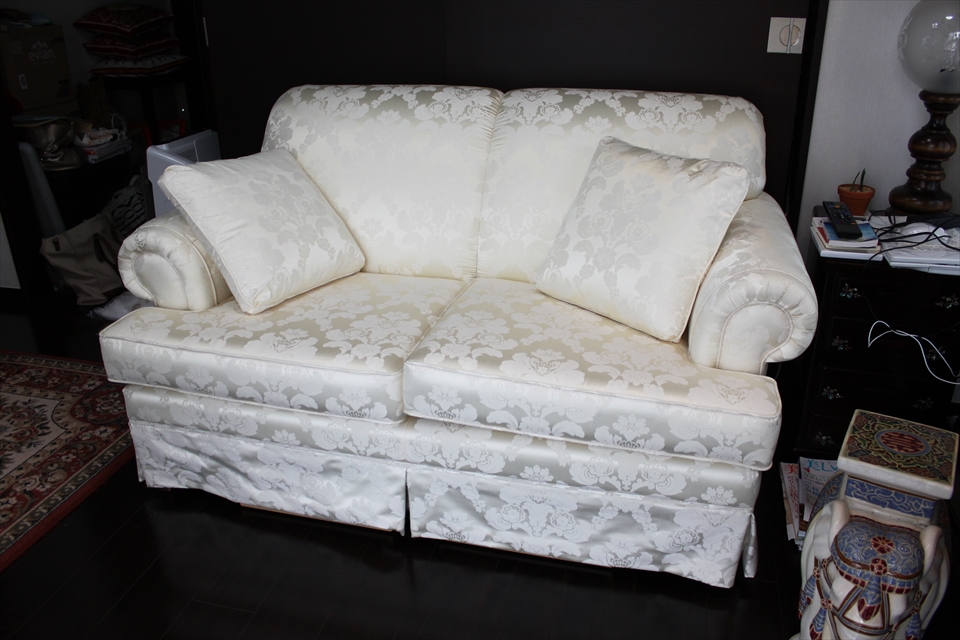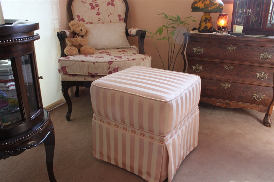 ご両親から受け継がれた1シーターのソファとオットマンを張り替えさせて頂きました。ソファは一般的に、張り地が傷…