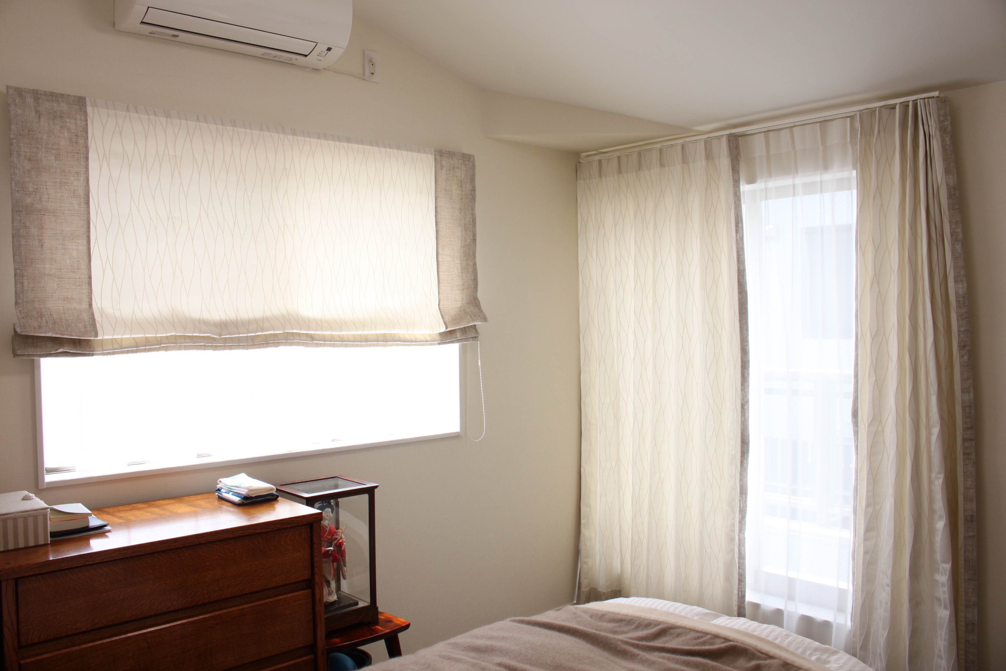 無地を数色組み合わせて作るカーテンは、ボクの得意とする手法なので良く…