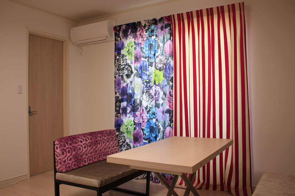 こちらは賃貸物件のホームステージングとして、カーテン、照明、デ…