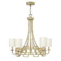 • ヴィンテージゴールドの塗装と、ジュエリーの様なジオメトリック・デザインが エレガントな5灯シャンデリア W 711mm H 751mm~(調整可) ¥240,000