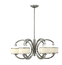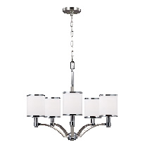 • 艶消しのサテン・ニッケルと鏡面仕上げのポリッシュが組み合わされた、モダンな5灯シャンデリア。さらに大型の9灯の物もあります。 W 642mm H 756mm~(調整可) ¥220,000