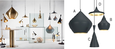 • トムディクソンの人気シリーズ、「Beat」。それぞれのデザインに色違いやスタンド等もあります。 【A】 W 520mm H 545mm~(調整可) ¥168,000 【B】 W 260mm H 310mm~(調整可) ¥67,000 【C】 W 190mm H 420mm~(調整可) ¥67,000 【D】 W 360mm H 190mm~(調整可) ¥67,000