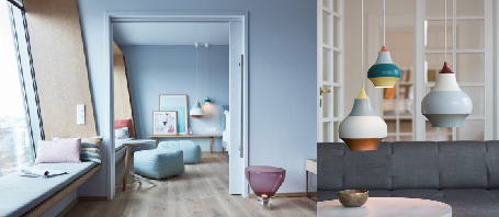 • サーカスをイメージしてデザインされた、ルイスポールセン社の「スィルク」。色違い、サイズ違い、たくさんラインナップされているので、色違いで多灯吊りしたいところ。 【写真手前の物】 W 220mm H 295mm (本体) ¥49,000