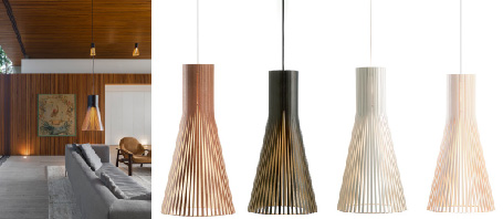 • フィンランド産バーチ材を使い、熟練された職人の手仕事によって作られた、Sect designのペンダントライト。 世界的に大人気の、今のラグジュアリーを象徴する様なデザインで、4色展開。落ちる光と漏れる光のバランスが絶妙です。 W 300mm H 600mm~(調整可)  ¥92,000