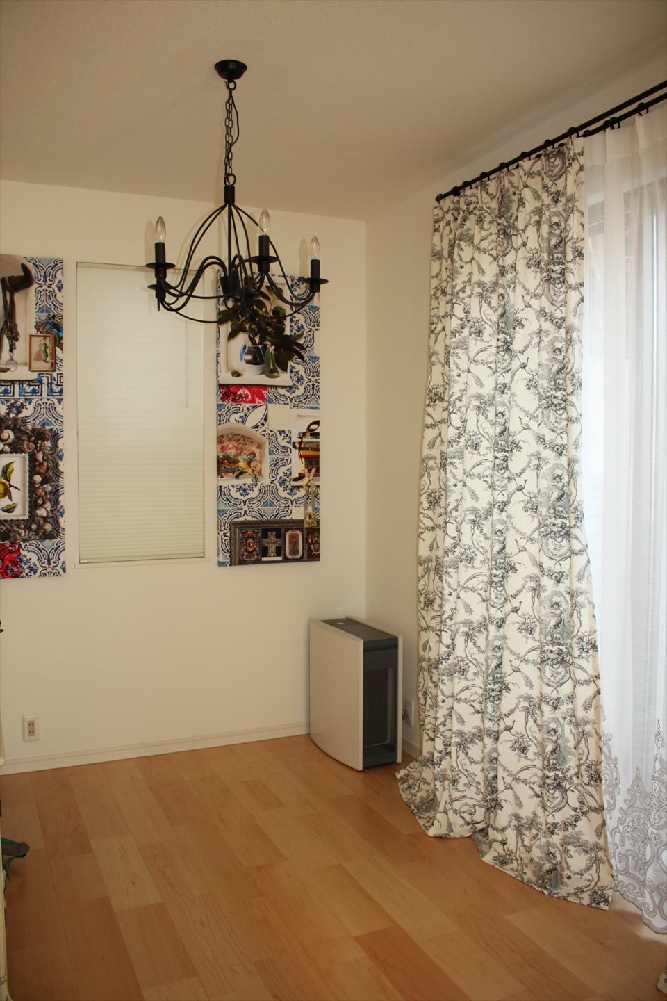 • こちらもモダン系からエレガンス系まで幅広く使える黒鉄のシャンデリア。工事不要の国産メーカーの物で、比較的手頃な価格も魅力です。 W 585mm H 590mm~(調整可) ¥63,500