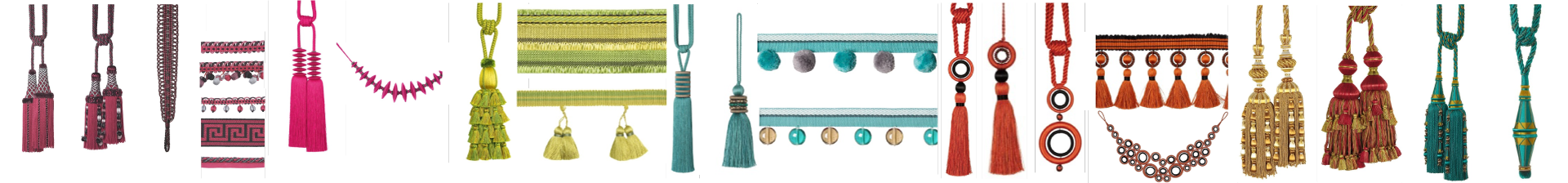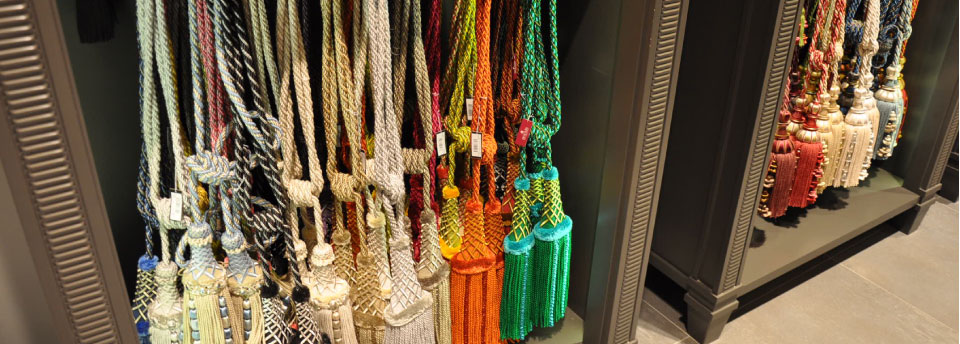 フランスの老舗ブランド、ウレス。タッセルやトリム、椅子などの家具に使うパーツ類、カーテンレール、ファブリック、様々な物を取り扱っていますが、メインはタッセルとトリム。これほどの多くのデザイン、カラーバリエーションを揃えているブランドは他にありません。上の写真はフランスのバスティーユにある本店。越川もよくここに新作をチェックしに行きますが、膨大なコレクションの数にはいつも驚かせられます。 最大のウリは、1つのデザインコンセプトに対して、タッセル、トリム、フリンジ類のデザインバリエーションが多く、コーディネートしやすい所。またそれぞれのアイテムに何色も色展開しているので、最良の一点が見つけやすいのが魅力です。
