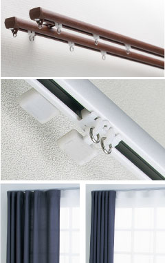 19mmという木製の中では最も細いレール。艶消しサテンのランナーやブラケットとのコンビネーションも絶妙で、ほどほどモダンさもあり、北欧系インテリアと相性が良いです。