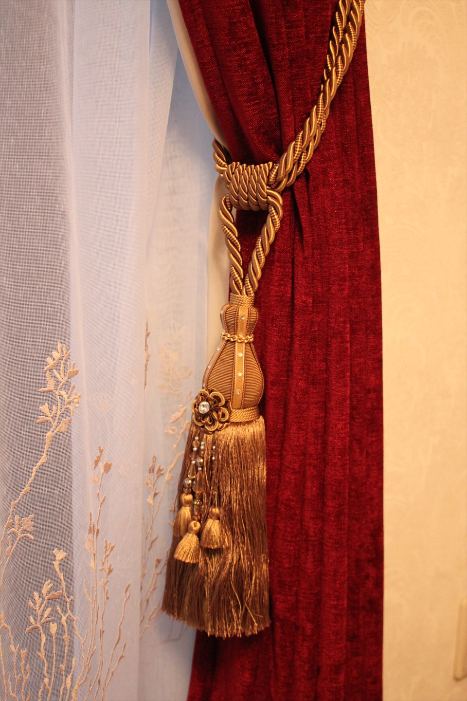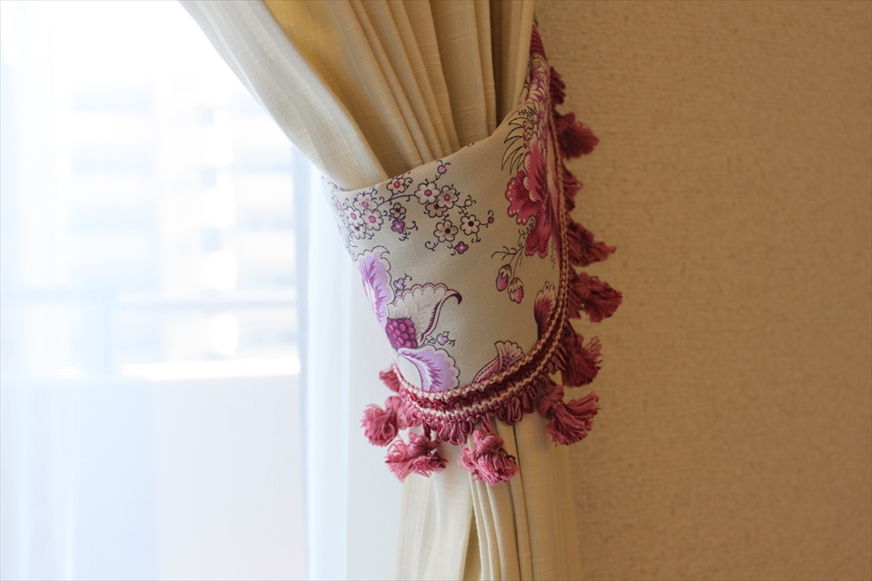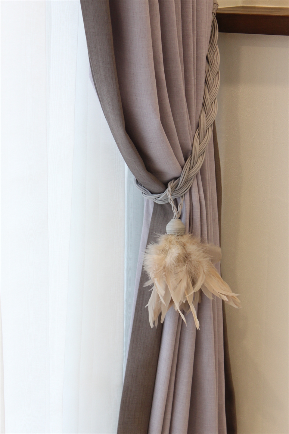 オーブで実際に納めたタッセルの一例です。カーテンに合わせてセレクトするのはもちろん、生地を使って作ったり、トリムをあしらったり、いろいろできます。