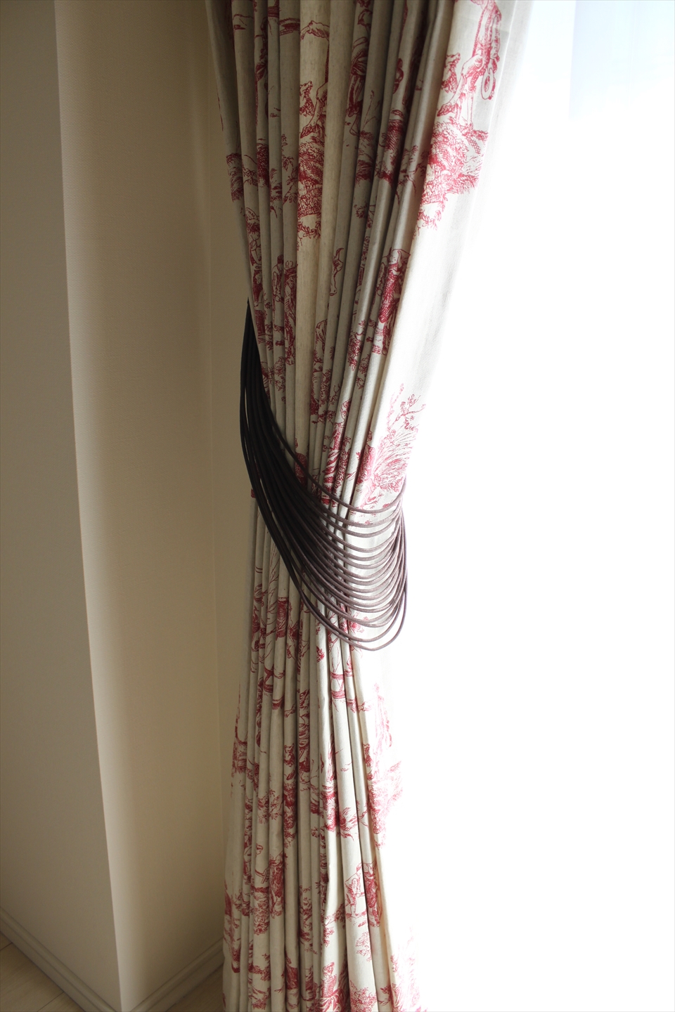まずお勧めの機能性レールから。レールに装飾性をもたせずに、あくまでもカーテンが主役ですよー、というのが機能性レール。お勧めしているのはTOSOネクスティ。細身でスッキリした形状、音が静かで滑りが良くブラケット付けも直付けも出来て、ランナーが回るのでフラットスタイルもいけるし・・・。長所を挙げればきりがないほど、とにかくパーフェクトなレール。色数も多いし、オプションも充実しています。という事でこのカテゴリーは、ネクスティ一択で。 数々のオプションの中で特にお勧めなのは、「カーテンストッパー」。先頭のマグネットランナーに差し込んだマグネットと、レールの任意の位置にはめ込んだマグネットがくっついて、その位置で止まってくれるという物。下の左の写真の様に、カーテンを開ききってもタッセルで留めない限り反動で開いてきてしまうのだけど、写真の様にピタッとその場で留まってくれるスグレモノ。 タッセルが不要になるから、めんどくさがり屋さんにもピッタリだし、モダンやカジュアルスタイル、ナチュラルテイストにも「タッセルをあえて使わずにバサッと下げっぱなし」というのはスタイルとしてアリです。