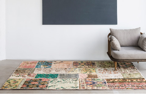 • 今では定番になった、アンティークカーペトのパッチワーク。こちらはトルコ絨毯のパッチワークで、色やサイズも豊富にラインナップ。