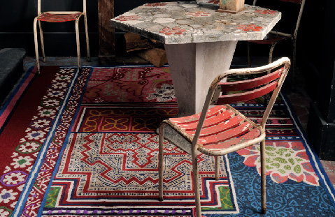 無地からモダンなデザインまでいろいろありますが、ここの最大の特徴は、キリムやアフガンウール、モロッカンなどのトライバルデザインを見事にモダンに洗練させたコレクションが多い所。アンティークペルシャのパッチワークも、他とは一味違うセンスが光ります。
