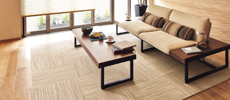 • 国産タイルカーペットもほぼ全社取扱い。エリアラグとしてでも、敷き込みでも、デザイン提案から施工までお任せ下さい。