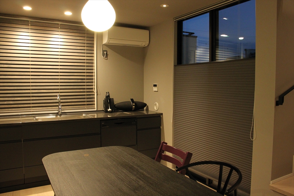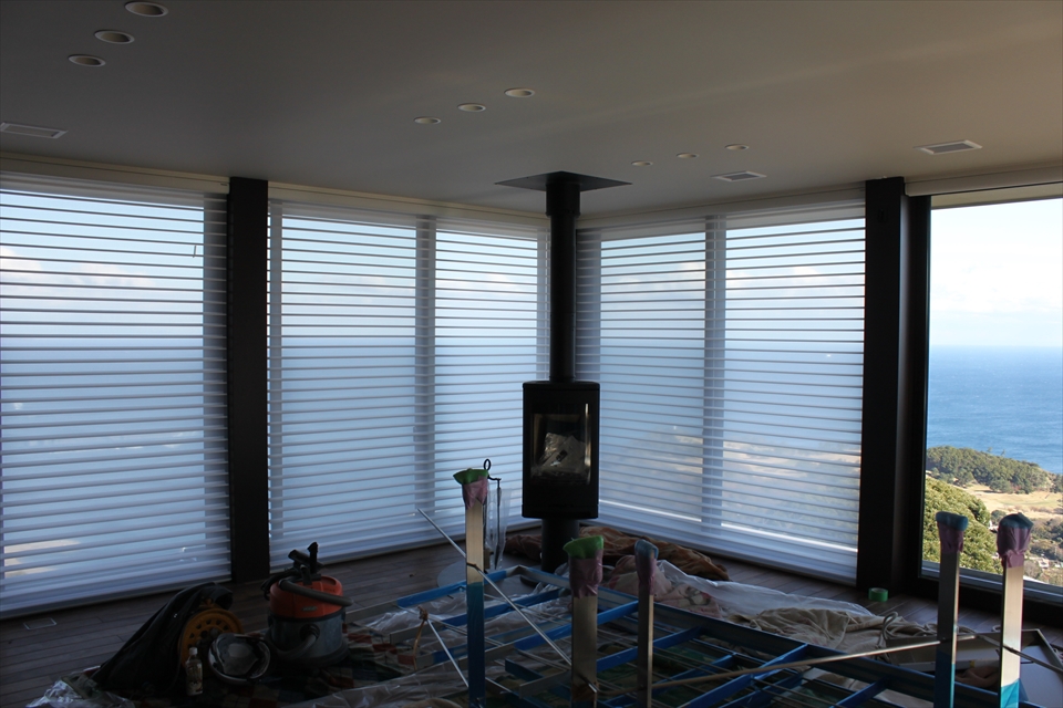 リビングルームの窓に、全てシルエットシェードで統一した事例です。ブラ…