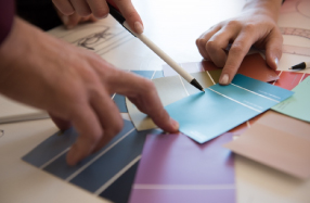 壁紙やカーペット、照明、造作家具など工事が必要は、必ず初めに越川も同行して細かい指示などをします。その他、工事や納品の日程などを調整しながら、責任を持って完成まで進めていきます。